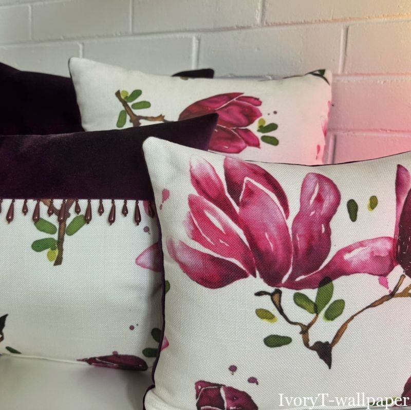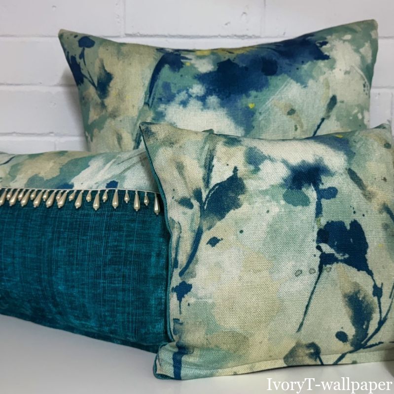 Come in and see our beautiful designer cushions made by Ivory T - fabric & wallpaper.