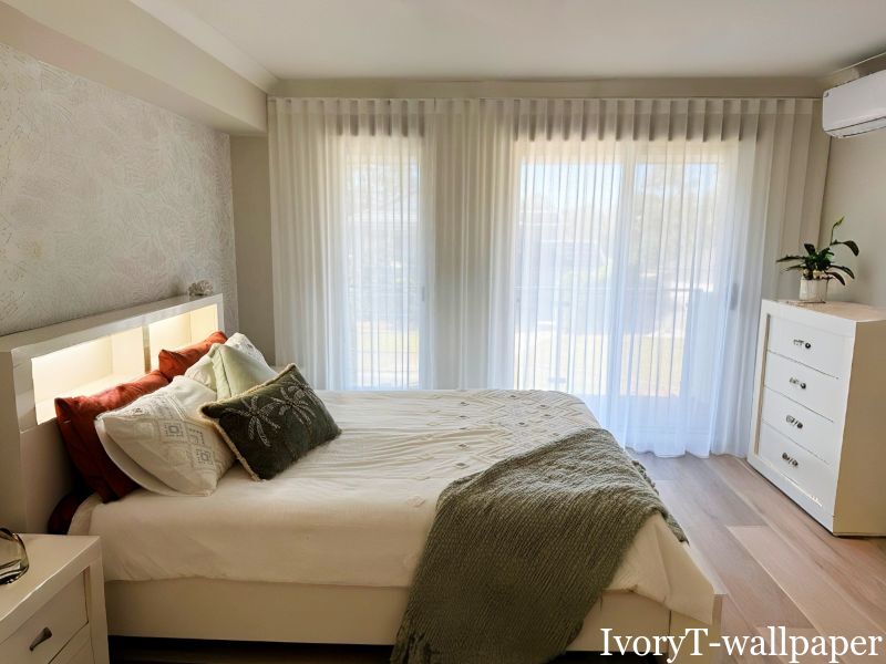 S-Wave Curtains and Casadeco Tropical Wallpaper / Ivory T - fabric & wallpaper