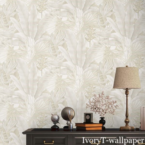Jungle Palms Wallpaper is bold jungle leaf design in soft beige tones