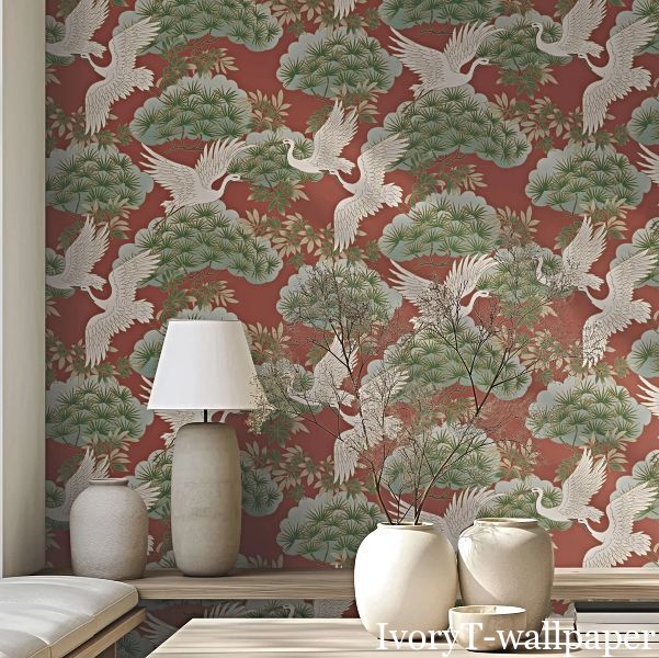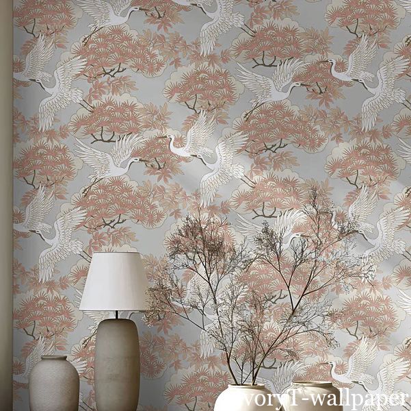 Sprig & Heron’s graceful birds lift their lustrous wings as they fly between beautiful, stylized bonsai trees, this wallpaper is a feature wall that will fill your space and lift it.