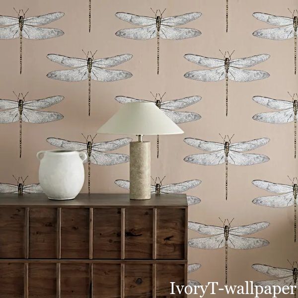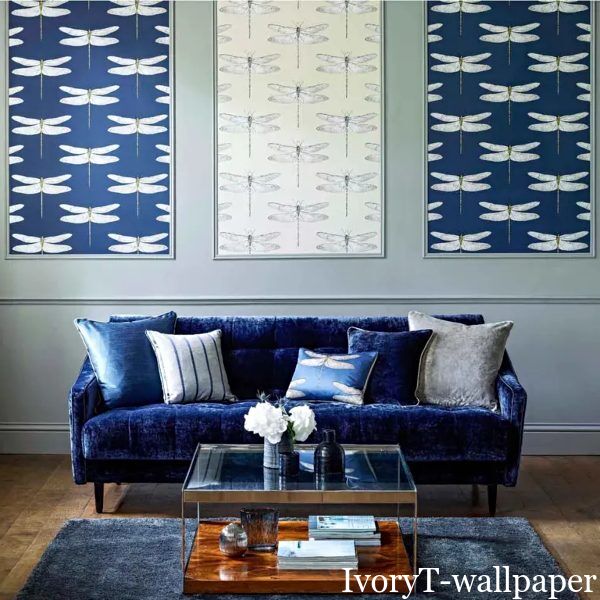 Demoiselle is an up-scaled delicately drawn dragonfly motif is placed on various coloured backgrounds on this wallpaper, creating a focal point for both contemporary and classic homes.