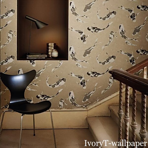Koi wallpaper has beautiful fish swimming under rippling water on a wide-width wallpaper in dreamy water colourways. A wonderful wallcovering that will make an impact in your home.