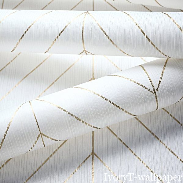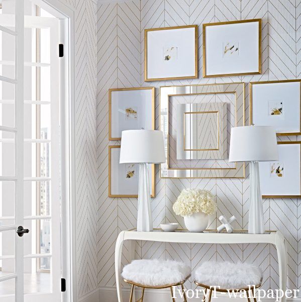 The alternating line-work of Land Bridge creates an elegant chevron wallcovering in either a metallic or white print. The natural paper string backing adds a subtle texture and visual interest by intersecting and disrupting the patterned print. This wallpaper has a beautiful soft and light look - very restful