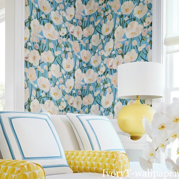 Tivoli is a sophisticated pattern, inspired by original Italian artwork, features painterly strokes and layers of elegant tulips. It is offered in soft blues and pinks and contrasting black and white. It will soften a room or area that has a hard edged look ie. brick, stone etc.